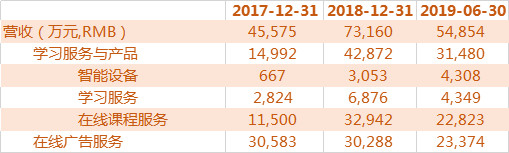 根据招股书披露,网易有道2017年、2018年及2019年上半年营收分别为4.56亿、7.32亿以及5.49亿元人民币;2018年和2019年上半年同比增速为60.53%和67.67%。数据上看,有道保持了较高的增长速度,并且呈现上升趋势。