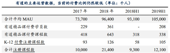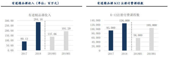 有道第一个优势是对于战略的正确把控。首先是将业务从工具应用逐渐重点放在了K12大班上,2019上半年,有道 K12注册付费课程数同比接近翻倍增长,有道精品课当前模式是以双师为主,其在线课程收入2018年已超过工具类产品的在线广告业务。