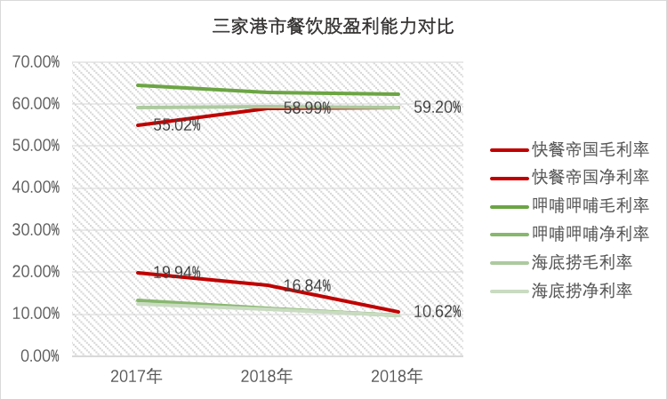 与港股餐饮股的财务数据进行对比,快餐帝国的表现与呷哺呷哺、海底捞等知名餐饮股的盈利能力相当,毛利率水平略低于后两者而净利率略高。整体看,餐饮行业的利润率水平仍然可观。