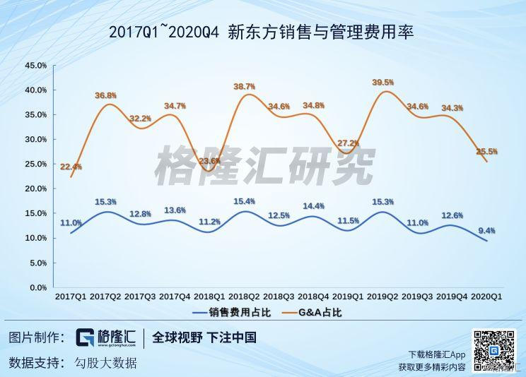在营收增长的同时,新东方的费用率有所下降。该季度销售费用率为25.5%,同比下降1.7pct,管理费用率为9.4%,同比下降了2.1pct。
