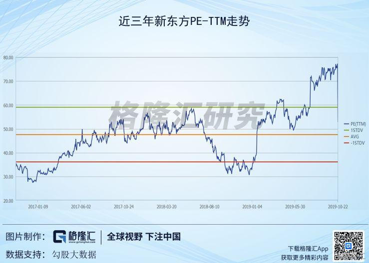 在FY2020Q1之前的几个季度,新东方的净利润增长并没有赶上股价的增长,结果便是其PE-TTM从2019年初的31.2倍涨至财报之前的76.2倍。所以,财报发出后兑现了市场的预期,反而会有获利盘出逃。