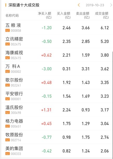 深股通净买入温氏股份1.31亿元,净买入海康威视0.62亿元,净卖出万科A 3亿元。