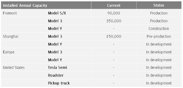 特斯拉在财报中给出了各工厂生产汽车的年产能简况,除美国Fremont工厂和中国上海超级工厂外,特斯拉表示欧洲的超级工厂也已经进入到选址最终阶段,预计将于2021年投产,据了解特斯拉也计划在欧洲工厂生产Model 3和Model Y两款车型。