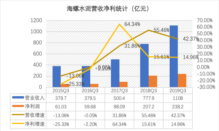 在水泥价格维持高位震荡的情况下,海螺水泥的盈利能力和成长属性都非常优秀。根据最新披露的三季度业绩报告,海螺水泥期内录得营业收入1108亿元,同比增长42.37%;录得归属净利润238亿元,同比增长14.96%。期内营收和净利都创了新高。