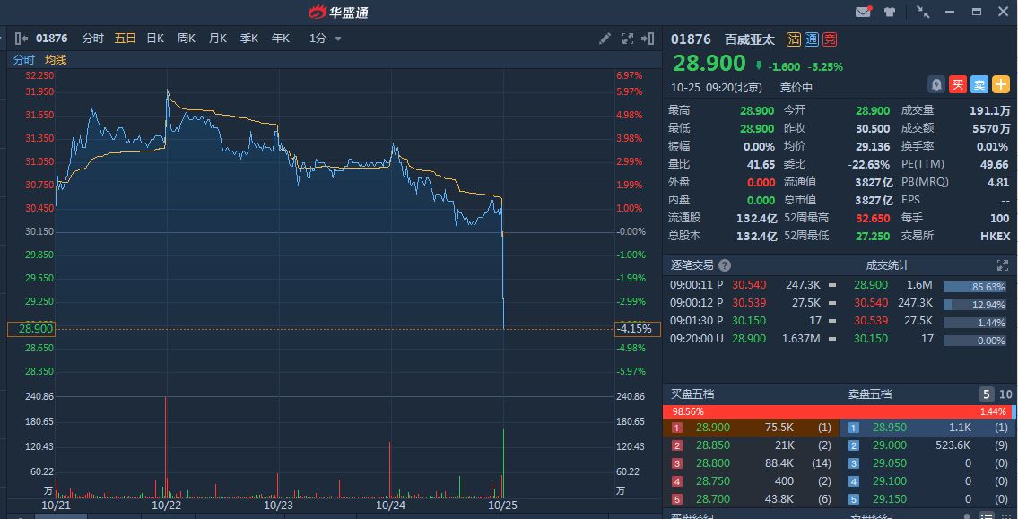 智通财经APP获悉,百威亚太(01876)公布2019年前9个月业绩,期内股权持有人应占溢利8.53亿美元,同比减少约5.12%。截至发稿,跌5.25%,报28.9港元,成交额5570.51万港元。
