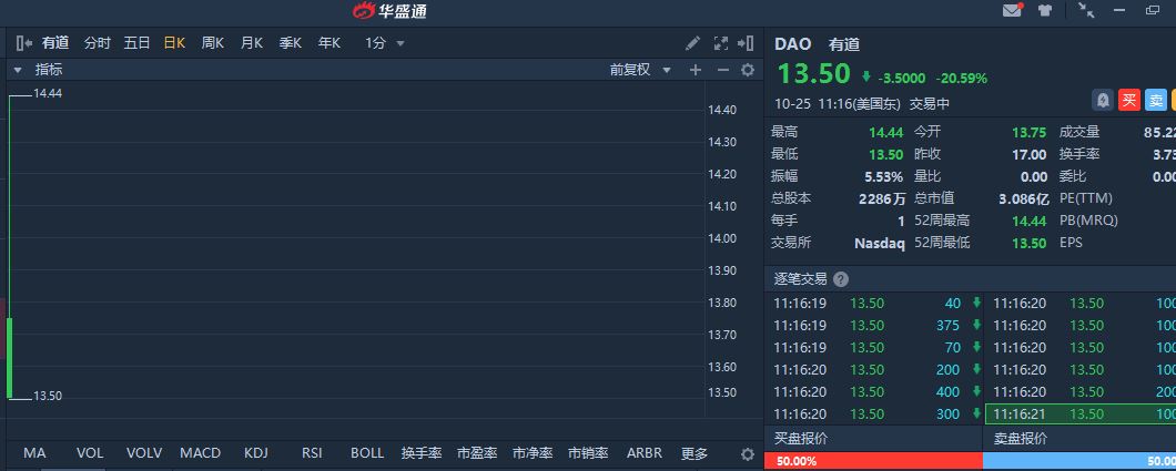 新浪科技讯 北京时间10月25日晚间消息,网易有道今日正式登陆纽交所,股票代码“DAO”,开盘价13.75美元,较发行价17美元下跌19%。