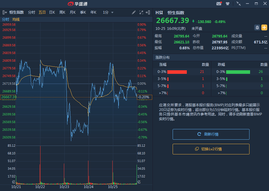 市场关注企业密集财报,加上中美经贸谈判进展顺利,恒指走势开始回稳,上周指数累跌0.2%,最高点26844.29点,最低点26491.71点。