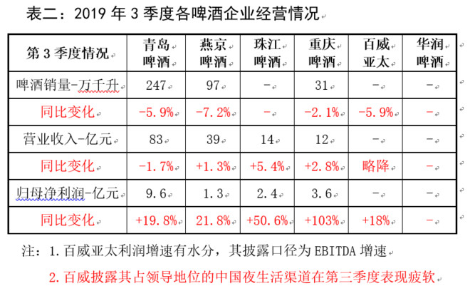 青岛啤酒第3季度销量下滑5.9%,行业集体不佳,国家统计局披露的3季度啤酒产量为1,170万千升,同比下滑2.6%,见表二,同行们也在下滑,整体经营并无问题。