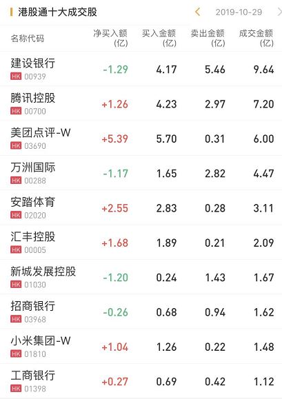 净卖出建行1.29亿港元,卖出新城发展控股1.2亿港元。