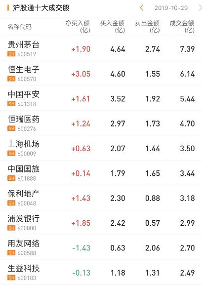 北上资金今日净流入31.8亿元,沪股通净买入贵州茅台1.9亿,净买入浦发银行1.85亿,净买入恒生电子3.05亿。