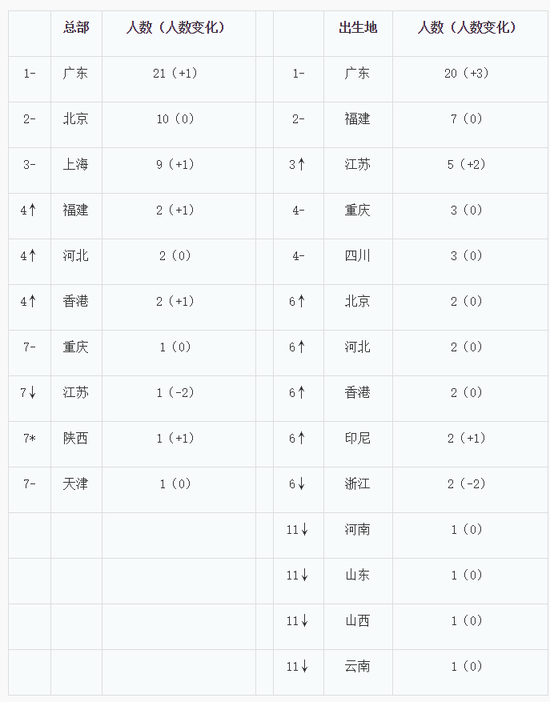 -对比去年排名不变 ↑对比去年排名上升 ↓对比去年排名下降 *对比去年新上榜