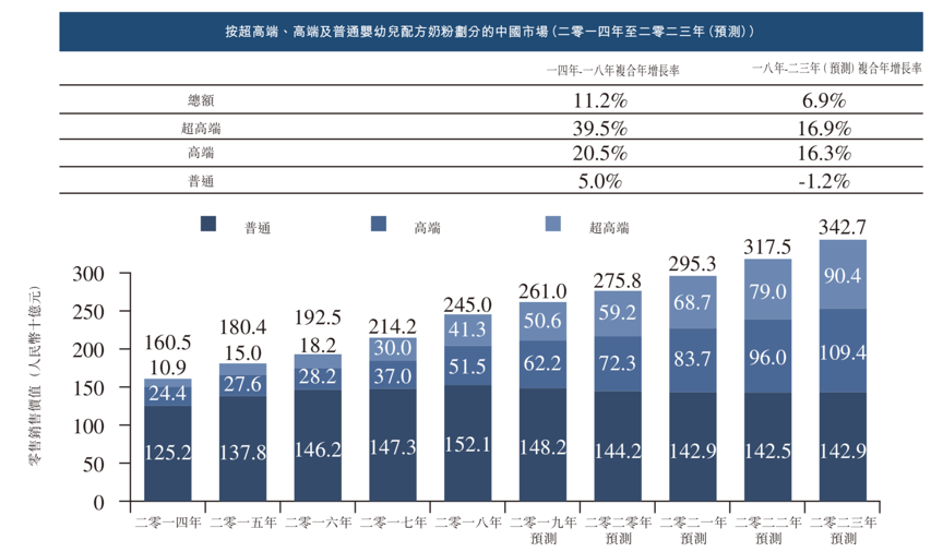 婴幼儿配方奶粉产品市场呈现出结构性发展的特点,其中高端及超高端市场增速较快,而普通类产品市场增速缓慢;