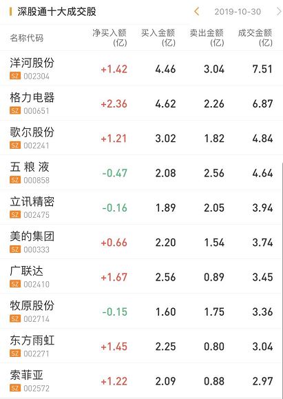 深股通净买入东方雨虹1.45亿,净买入格力电器2.36亿,净买入洋河股份1.42亿。