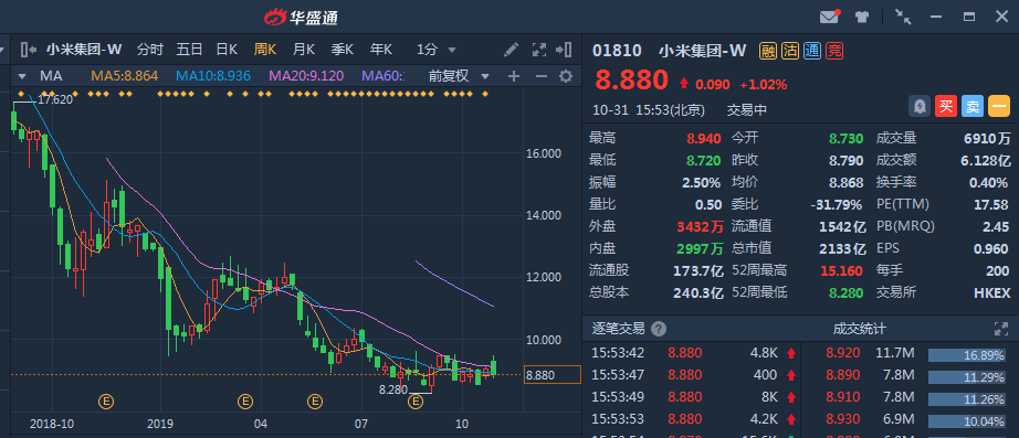 乐观派代表中信证券表示,市场对小米的悲观预期已经被充分反应,目前公司的动态PE才17倍左右,估值已是历史低位,纳入港股通后更是有望迎来增量资金流入,值得长期看好。