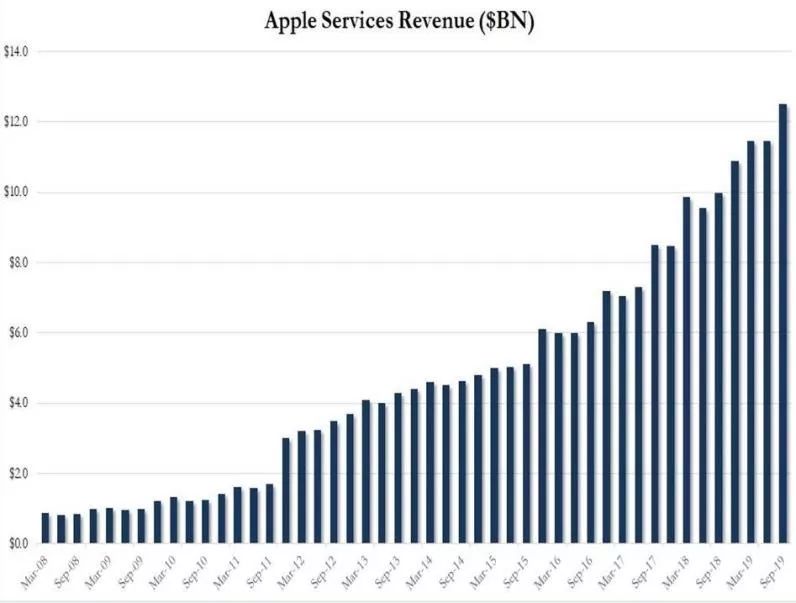 另一方面,从9月10日开始,苹果将为购买iPhone、iPad、Mac、iPod Touch或Apple TV的用户提供免费的Apple TV+一年访问权限,并在激活设备后的3个月内开始免费访问。这意味着至2020财年潜在销售的2.5亿多台设备将附带免费的TV+一年服务,这将有效地扩大服务的分发范围,并降低了与竞争对手相比的客户获取成本。这种激进的方法可能为苹果在流媒体视频领域占得一席之地。这里的关键问题是:TV+能做多大,它将如何影响苹果的财务模式。