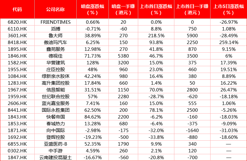 暗盘、首日吃肉行情,鲁大师、傲迪玛表现亮眼