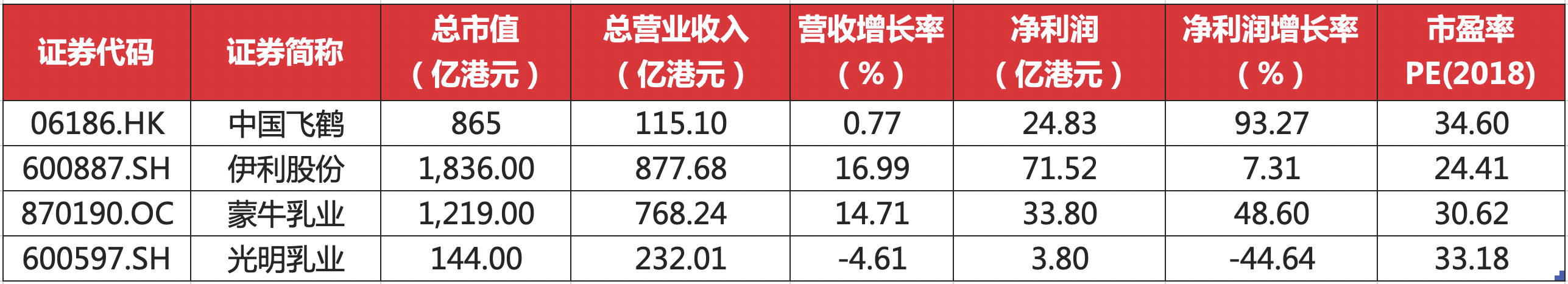 飞鹤还有极其亮眼的业绩增长,2012-2018短短六年时间内,飞鹤收入增长接近5倍,纯利增长超过14倍,远远高于两大乳业巨头伊利和蒙牛同期的增长。