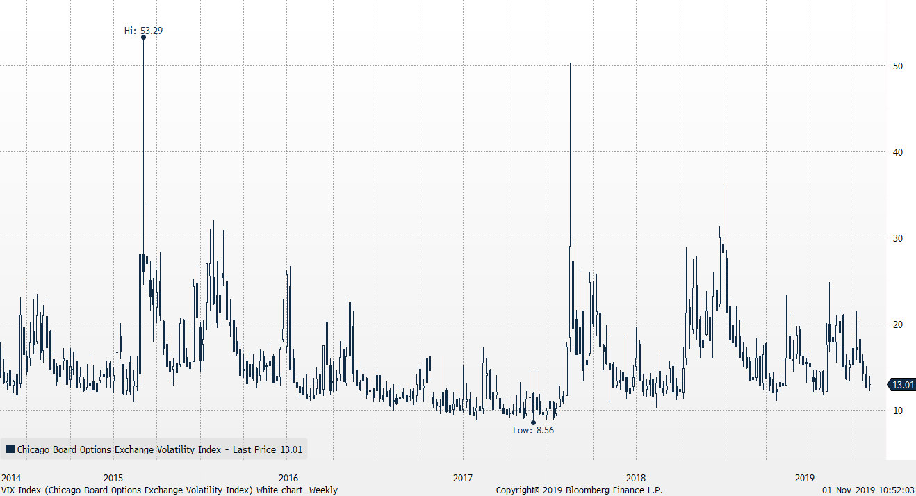 Given the trajectory of macro data, the geopolitical uncertainty on the rise and a bumpy ride on the trade deal we still have the view that volatility could pick up in November and December although this seems like a contrarian view as equities are climbing higher. The VIX is back to levels around July before the August volatility kicked in. In our view equity volatility is fragile to news on the US-China trade deal and US jobs data out today.