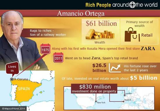根据福布斯的数据,如果只算房地产投资的话,奥特加也能排进全球前20。