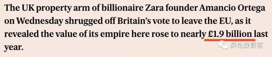 2016年6月23日英国脱欧公投结果一出,很多投资者选择撤出英国,但Zara老板却反其道行之,往伦敦地产追加了近1亿英镑的投资。