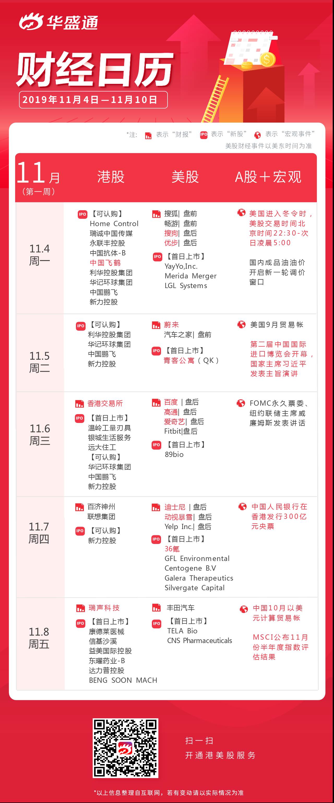 1. 本周新股认购及上市密集,银城生活服务、温岭工量刃具、远大住工等9只港股新股挂牌,美股则有36氪、青客公寓等热门股上市;