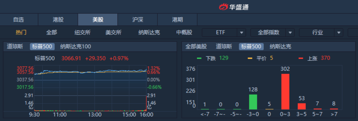 上周五,受十月非农数据提振,美股高开高走。截至收盘,道指涨1.11%;标普500涨0.97%;纳指涨1.13%。标普500和纳指均创历史新高。
