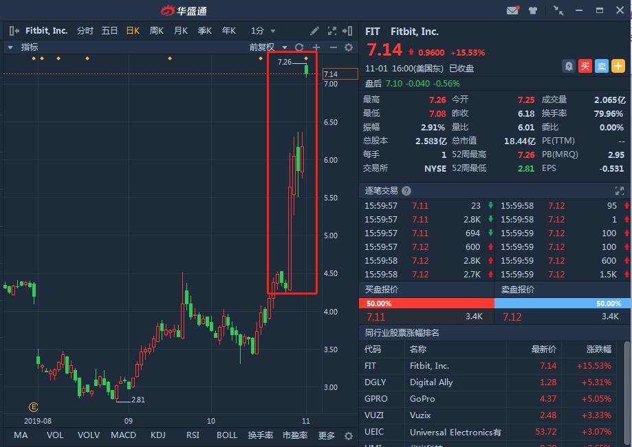 实际上,一周前便有媒体曝出谷歌展开收购的消息,受消息刺激,上周一Fitbit股价暴涨超30%,上周五大涨超15%,短短一周涨幅超60%,上周五股价收于7.14美元,市值18.44亿美元。