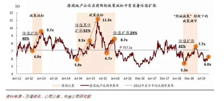 同时中金认为地产股处于历史估值的底部。中金预测未来一年房地产板块估值中枢将大体平稳,港股内地地产板块历史平均的市盈率在7-8倍,而当前估值约6倍明显接近历史底部。