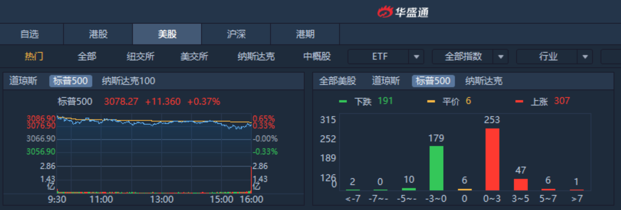 周一,美股高开高走,道指盘初涨破历史高位。截至收盘,道指涨0.42%;标普500指数涨0.37%;纳指涨0.56%。三大股指均创历史新高。