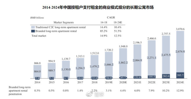 与发达国家相比,中国的长期租赁市场仍然渗透不足。在德国、日本等发达国家,截至2018年12月31日,长期租赁渗透率分别占总人口的55.0%和38.7%,而中国仅为17.2%,显示出巨大的增长潜力。截至2018年底,中国共有长期租赁租户2.405亿户,预计截至2024年将达到2.87亿,复合年增长率为3.0%。