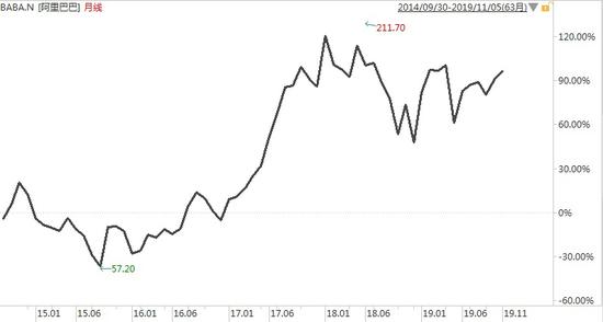 虽然上市后不久,阿里巴巴也一度遭遇破发。但2015年10月后,便开启了一轮长达33个月的上涨,期间累计涨幅超270%,总市值一度突破5512亿美元,美股的投资者赚得盆满钵满。