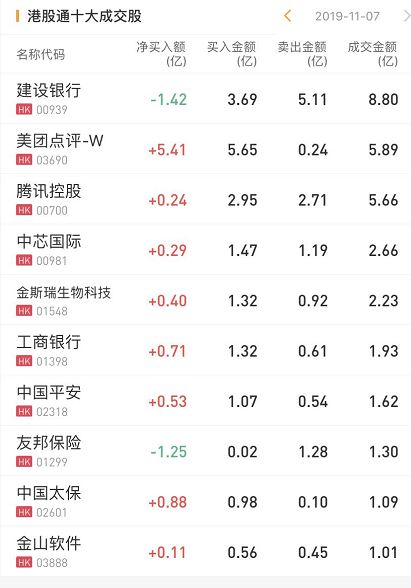 港股通今日净流入港股15.56亿港元。港股通今日净买入美团点评5.41亿港元,中国太保0.88亿港元。