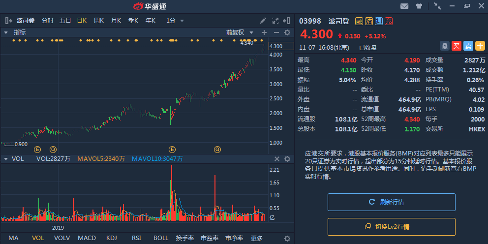 从做空那天的低位算起,波司登在短短4个多月时间实现了157%的涨幅,市值在11月7日盘中创下历史新高的469亿港元。