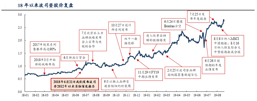 18年3月起波司登战略重新聚焦单一羽绒赛道,收缩四季化产品,专注定位“羽绒服专家”形象,到了19财年波司登品牌四季化产品销售基本结束,事实证明了该决策是正确的。