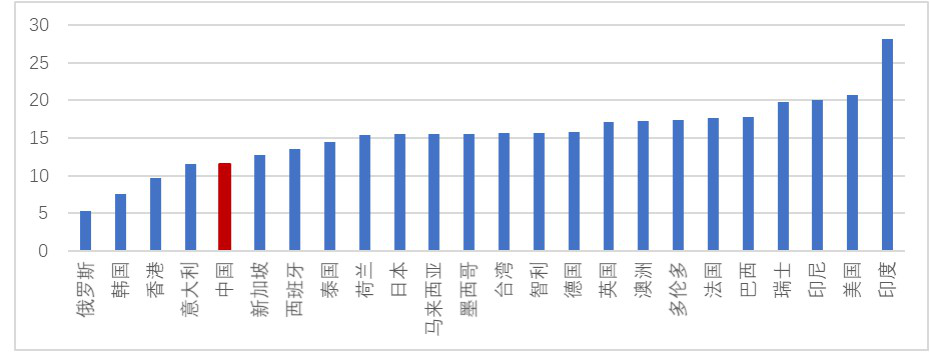 与全球市场横向比较,除韩国和俄罗斯外港股PE最低,PE仅10倍。