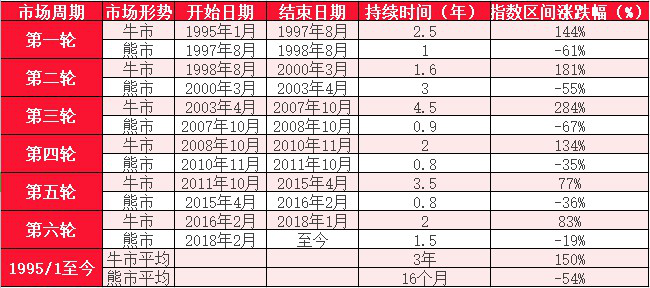 从1995年开始,港股已经经历了6轮牛熊,95年以来,港股牛市平均持续三年,熊市平均16个月。