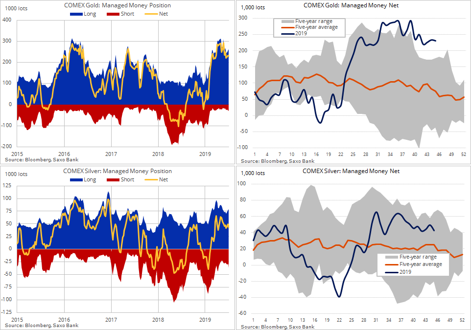 Saxo Bank publishes two weekly Commitment of Traders reports (COT) covering leveraged fund positions in commodities, bonds and stock index futures. For IMM currency futures and the VIX, we use the broader measure called non-commercial.