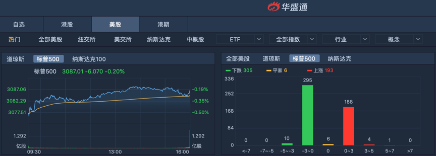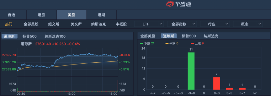 周一,市场关注国际贸易关系进展,并等待美总统特朗普与美联储主席鲍威尔本周将发表的讲话,美股受全球市场普遍走低拖累,三大指数收盘涨跌不一。其中,道琼斯指数涨0.04%。标普500指数跌0.20%,纳斯达克指数跌0.13%。