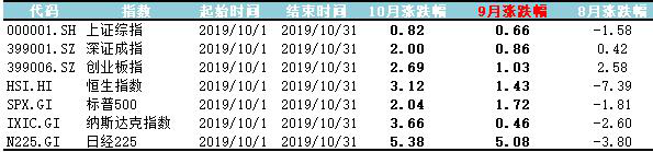 10月份中美贸易出现重要进展,虽然未来仍存在变数,但是双方欲达成贸易协议的意愿显著升高。市场的风险偏好有所提升,投资者仍持续买入高β的科技股。