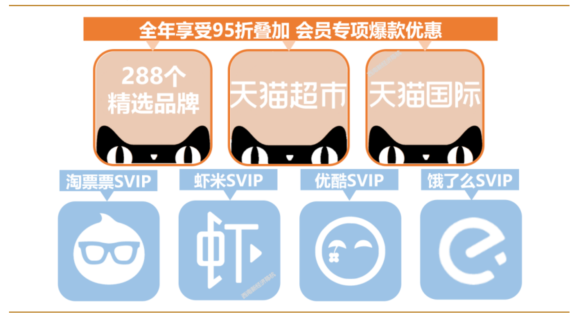 阿里 88VIP 的 88 元价格仅针对 1000 分淘气值以上的用户,在很大程度上针对电商深度用户,避免较低订阅费所带来的机会成本,是提高用户粘性的重要手段。但对营收贡献影响十分微弱。