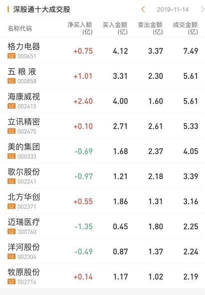 深股通净买入海康威视2.4亿,净买入五粮液1.01亿;净卖出迈瑞医疗1.35亿。