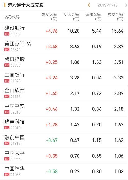 港股通资金今日净流入港股28.26亿元。今日净买入建行4.76亿港元,美团点评3.48亿港元,工行3.24亿港元;南下资金已连续15日净流入美团,累计约77.16亿港元。