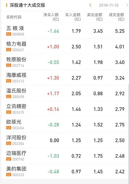 深股通净卖出五粮液1.66亿,净买入温氏股份1.17亿,净买入海康威视1.3亿。