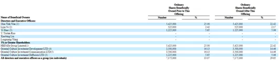 招股书显示,旸谷文化在上市前的股东结构中,Mun Wah Wan、孔爱民、高华军、邵毅、倪黎佳分别持股 25.00%、16.13%、16.13%、5.65%、2.42%。