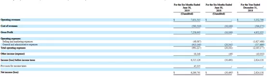 财务数据显示,在过去的2018年和2019年上半年,旸谷文化的营业收入分别为 535.27 万 和 785.15 万美元,相应的净利润分别为 262.41 万 和 626.98 万美元。