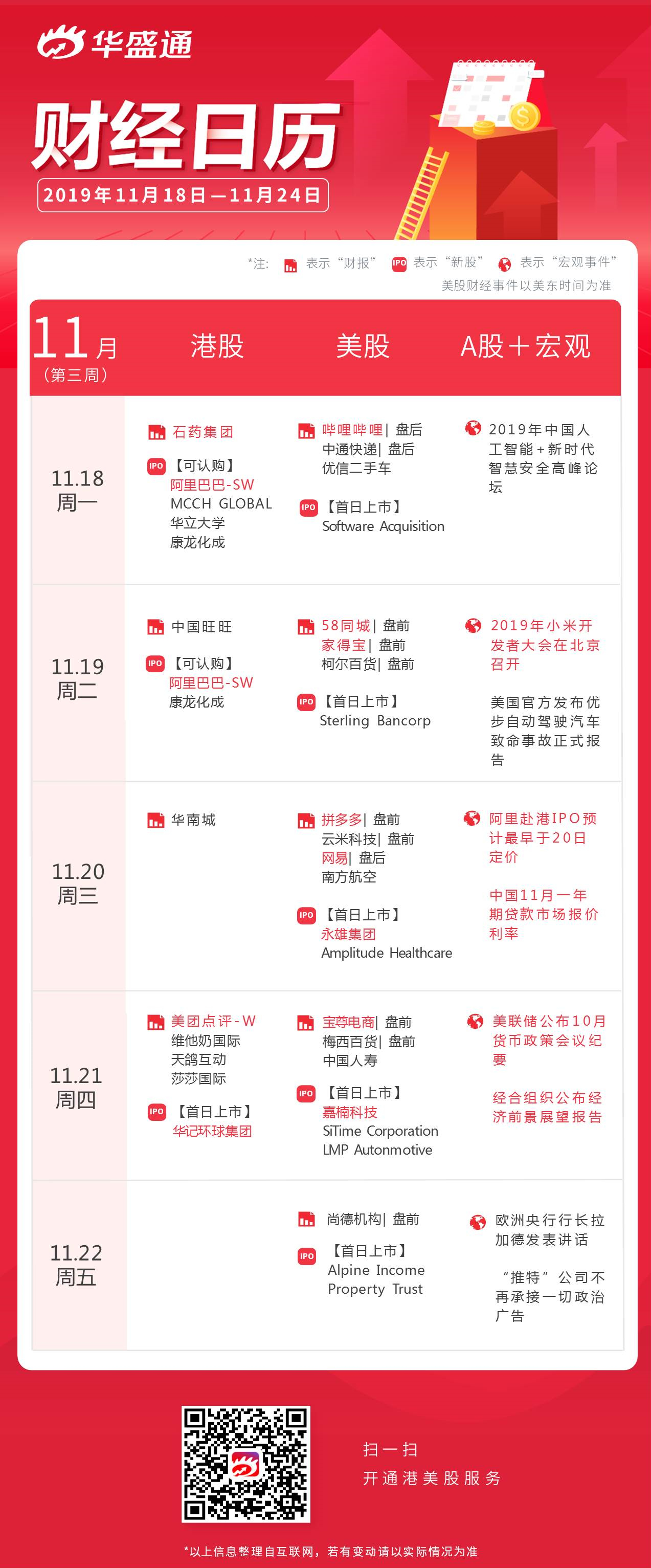 1. 阿里巴巴认购截至周三9:00,本周新股上市较少,催收服务提供商永雄集团将于周三美股上市,华记环球集团、嘉楠科技将于周四分别在港股、美股挂牌;