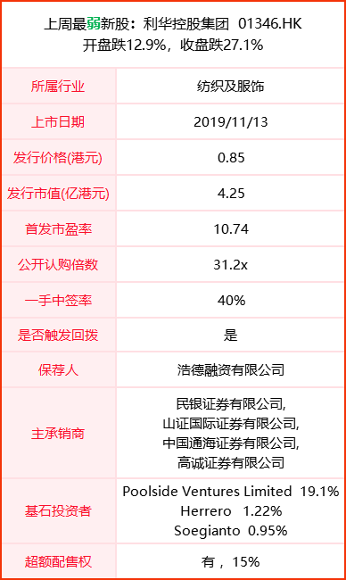 利华控股为知名服装品牌提供供应链解决方案,与美欧亚太高端服装品牌合作数十年。申购期还曝出基石有马云旗下基金参与,可以人算不如天算。