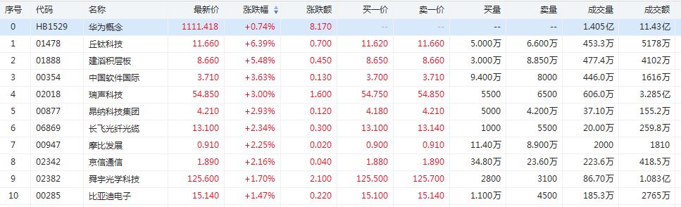 新浪港股讯 11月19日消息,华为概念股走强,截至发稿,丘钛科技涨6.39%,瑞声科技涨2.63%,舜宇光学科技涨1.78%。