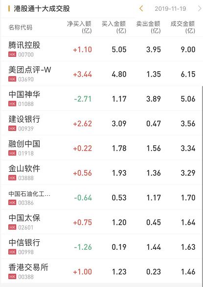 港股通资金今日净流入港股31.95亿元。今日净买入美团点评3.44亿港元,建行2.62亿港元。