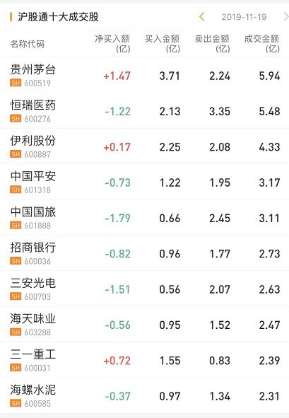 北上资金今日净流入39.95亿元,沪股通净买入贵州茅台1.47亿,净卖出中国国旅1.79亿。